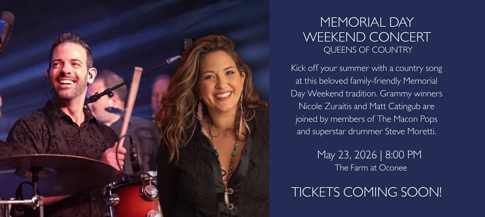 Kick off summer in Lake Country with OPAS at The Farm at Oconee on Saturday, May 23, 2026 at 8 PM!