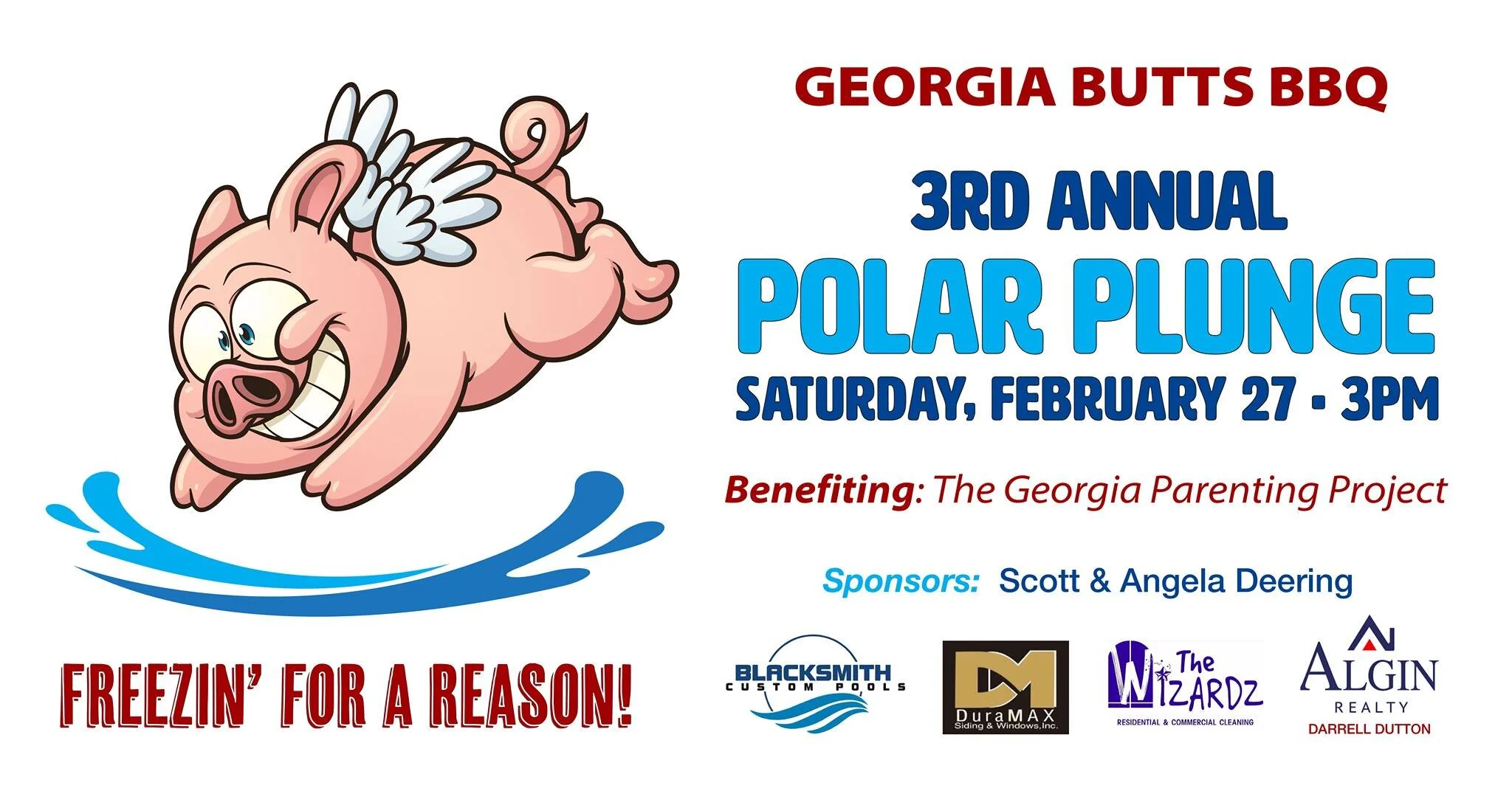 Georgia Butts BBQ’s 3rd Annual Polar Plunge will be February 27th this year. Tickets costs $30, which covers a soup buffet, a tee shirt, a towel and a beer cup. Plunging begins at 3:00 p.m.