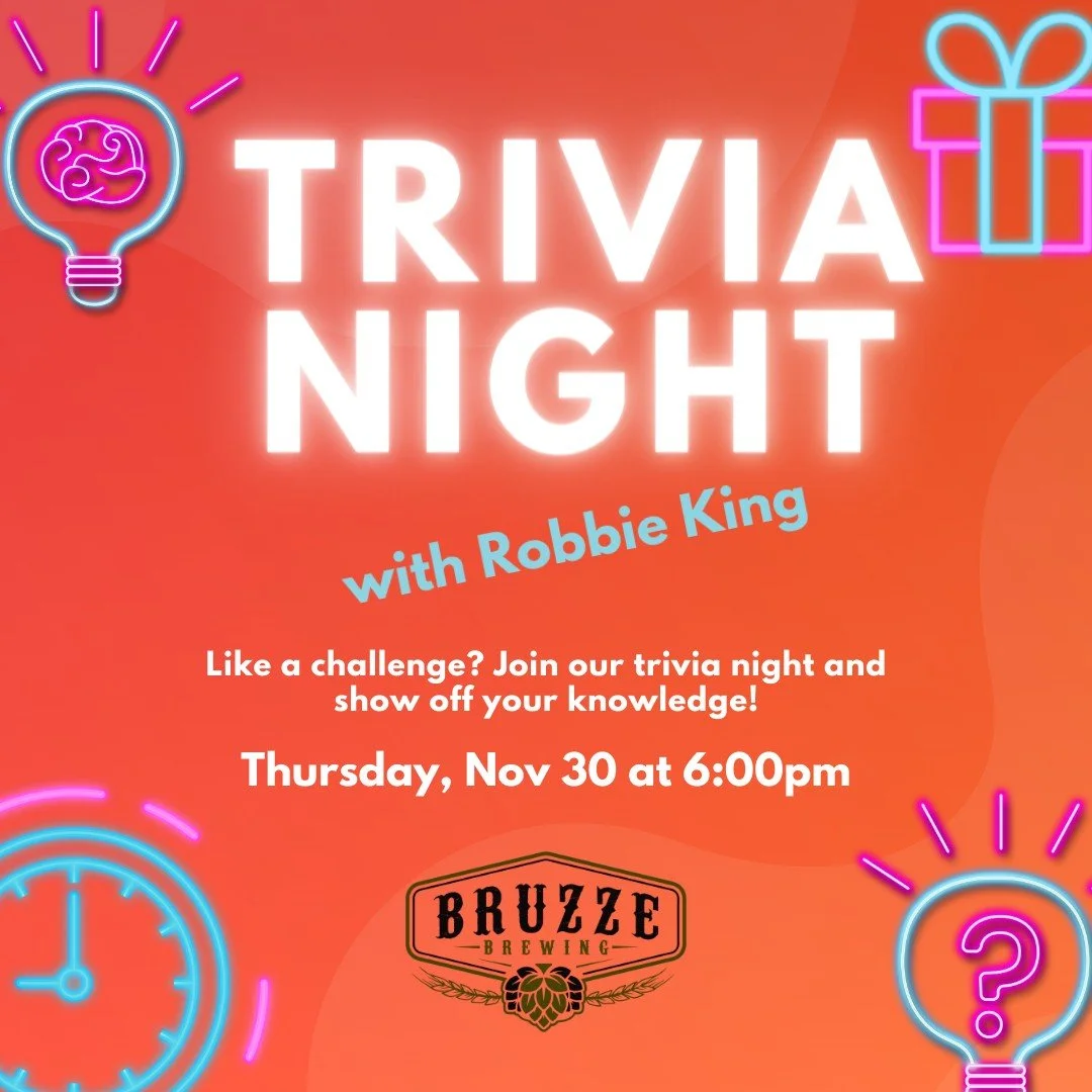 Join Bruzze Brewing for an evening of mind-boggling questions and cold brews! Their Trivia Night, hosted by the charismatic and knowledgeable Robbie King, is the perfect opportunity to put your trivia skills to the test while enjoying the delicious craft beers Bruzze Brewing has to offer.