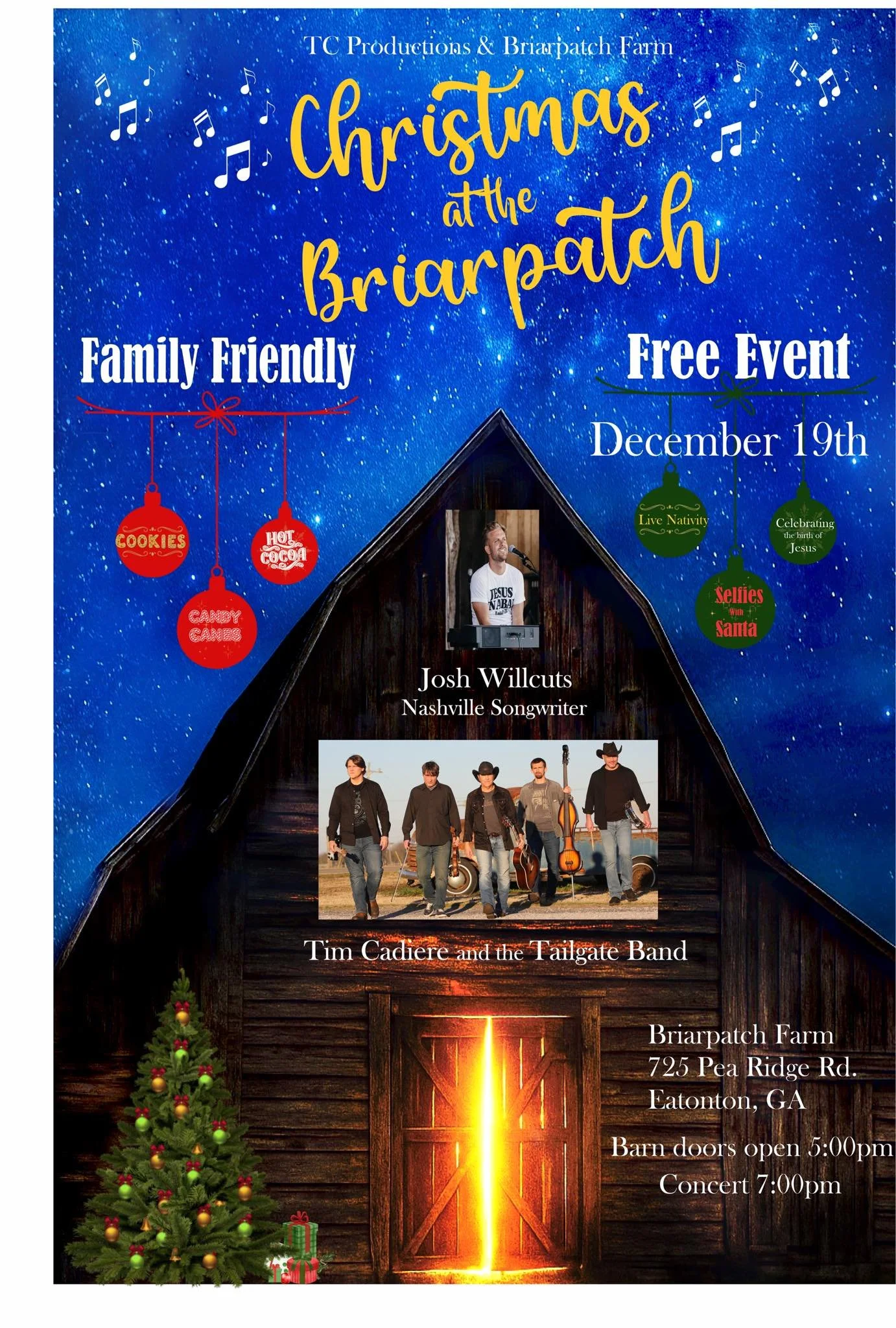 TC Productions and Briarpatch Farm invite the community to Christmas at the Briarpatch, a FREE, family-friendly Christmas celebration on Friday, December 19th at 725 Pea Ridge Rd., Eatonton, GA. This festive outdoor event welcomes guests of all ages for an evening filled with music, joy, and the true spirit of Christmas.