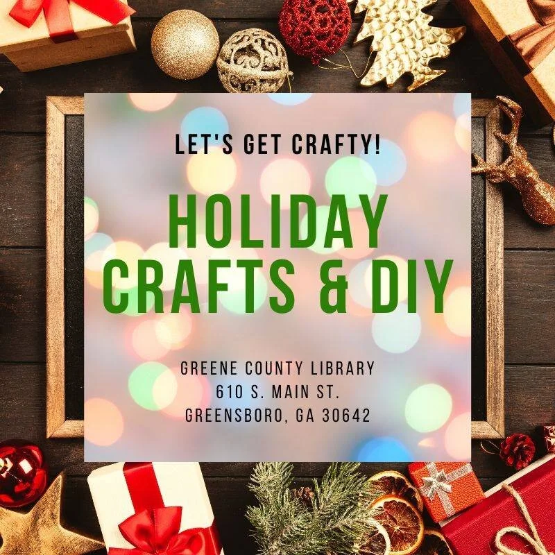 Holiday Crafts: Various DIY Monday, December 2, 2019 3:00 PM 5:00 PM Greene County Library 610 South Main Street Greensboro, GA, 30642 United States (map) Google Calendar ICS Craft days at the Greene County Library this week!! Bring your friends and your creative skills to help us decorate the library tree! A great way to enjoy the library and decorate for Christmas!!https://www.facebook.com/events/