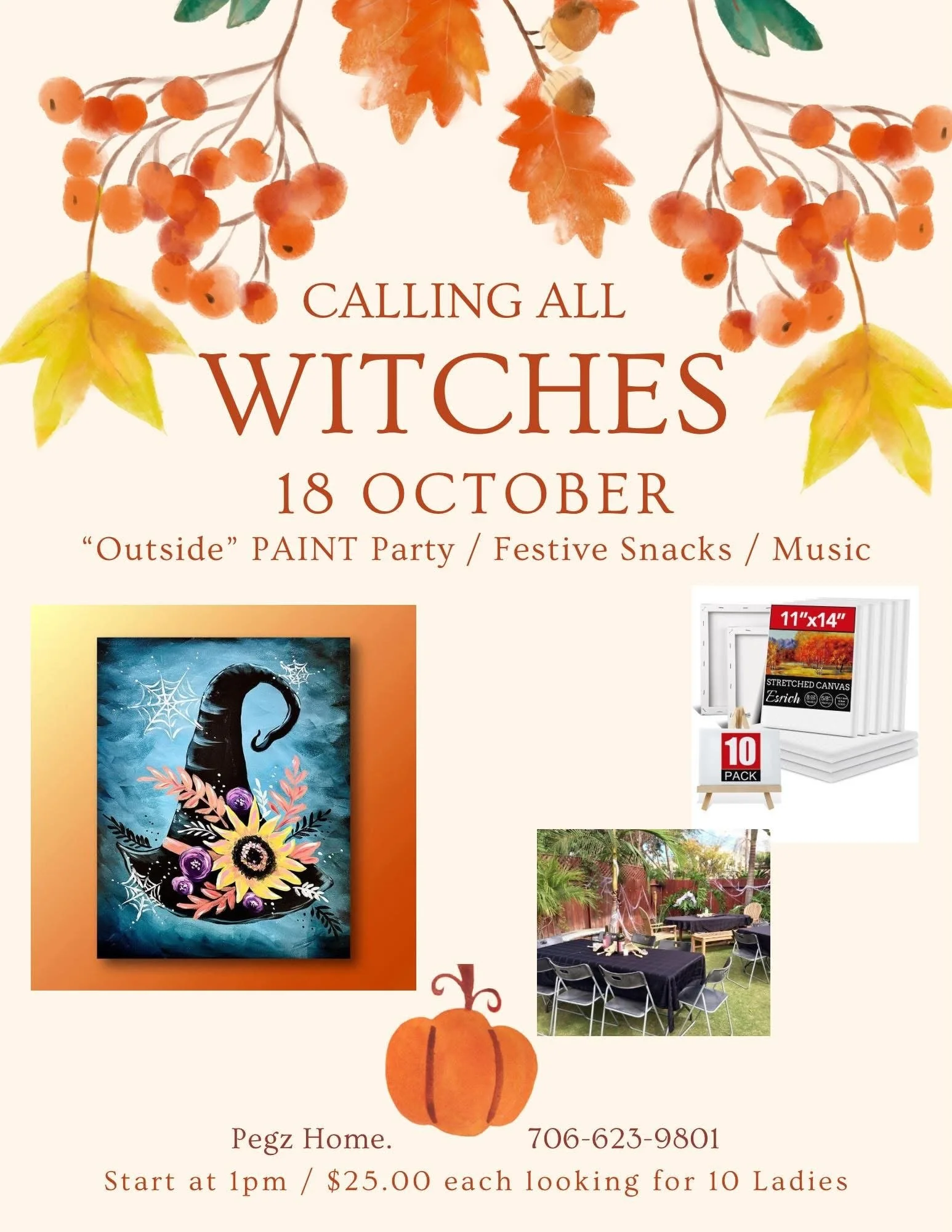 Enjoy a festive afternoon painting a whimsical witch’s hat masterpiece while savoring seasonal snacks, great music, and plenty of laughs. This “outside” paint party is perfect for getting into the Halloween spirit and spending time with friends in a relaxed, creative setting.