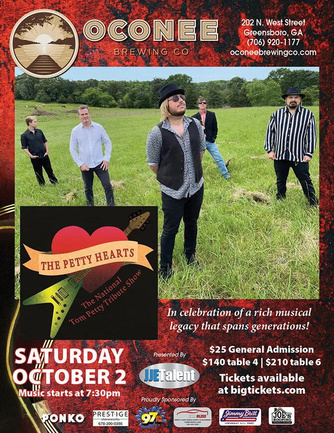 The Petty Hearts Saturday, October 2, 2021 7:30 PM 10:00 PM Oconee Brewing Company 202 North West Street Greensboro, GA, 30642 United States (map) Google Calendar ICS The Petty Hearts Tickets