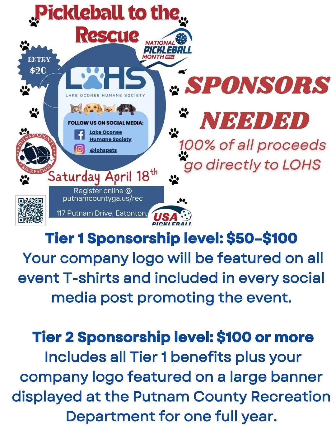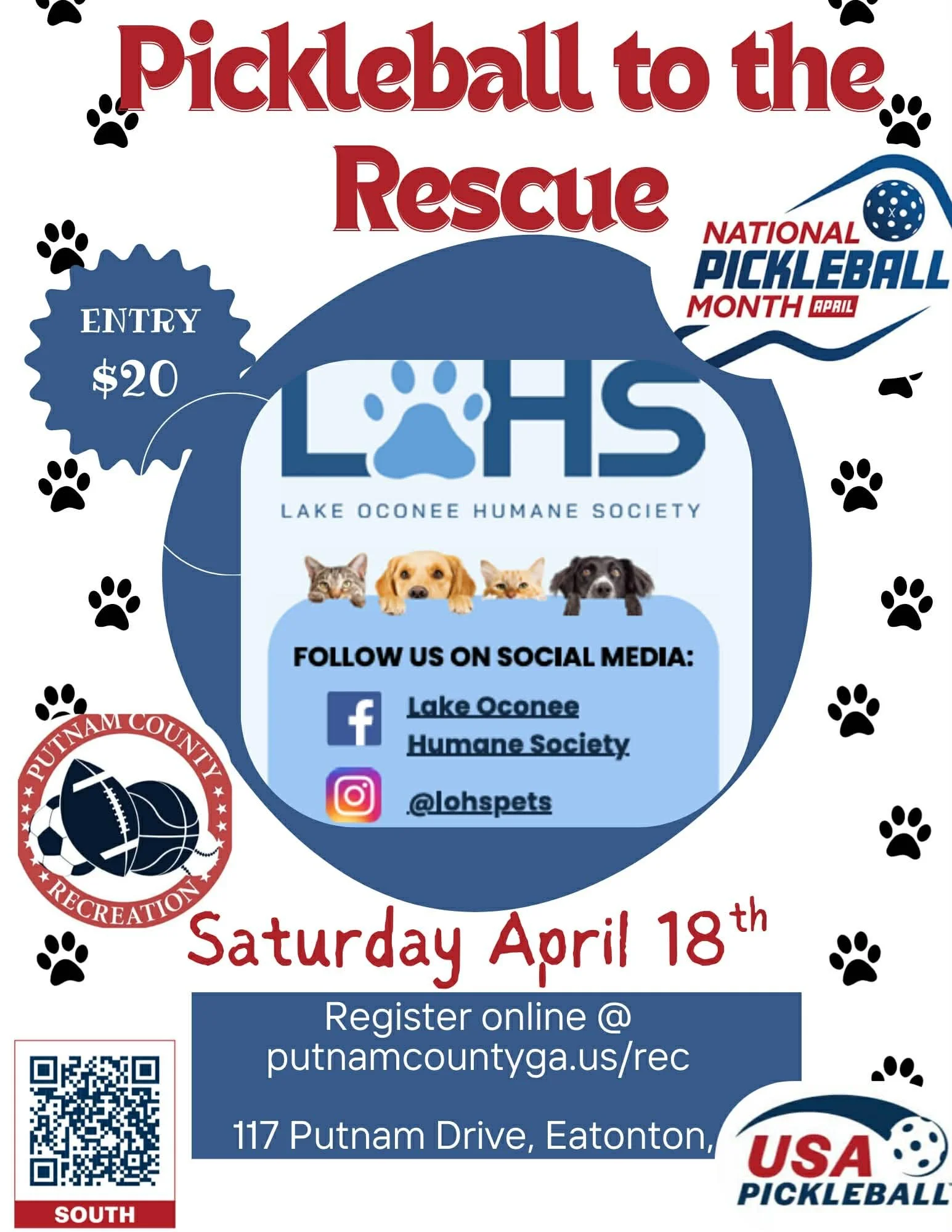 Pickleball to the Rescue is returning on Saturday, April 18 with a fun-filled community tournament and festival-style fundraiser benefiting the Lake Oconee Humane Society. Designed for players of all skill levels and families of all ages, this annual event brings the Lake Oconee community together for a day of friendly competition, entertainment, and meaningful impact.